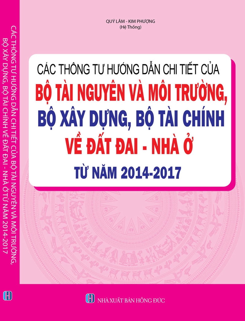 Nhằm đáp ứng công tác tuyên truyền để cán bộ quản lý nhà nước, các doanh nghiệp và nhân dân chấp hành đúng chủ trương, đường lối của , chính sách, pháp luật của Nhà nước về đất đai. Nhà xuất bản Hồng Đức xuất bản cuốn sách: “CÁC THÔNG TƯ HƯỚNG DẪN CHI TIẾT CỦA BỘ TÀI NGUYÊN VÀ MÔI TRƯỜNG, BỘ XÂY DỰNG, BỘ TÀI CHÍNH VỀ ĐẤT ĐAI - NHÀ Ở TỪ NĂM 2014-2017".
