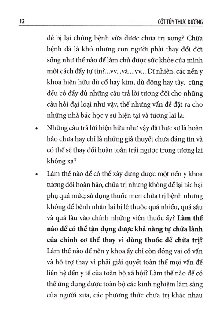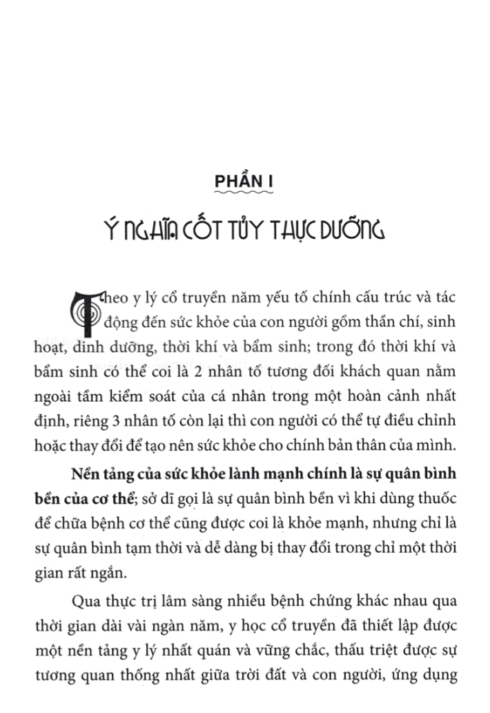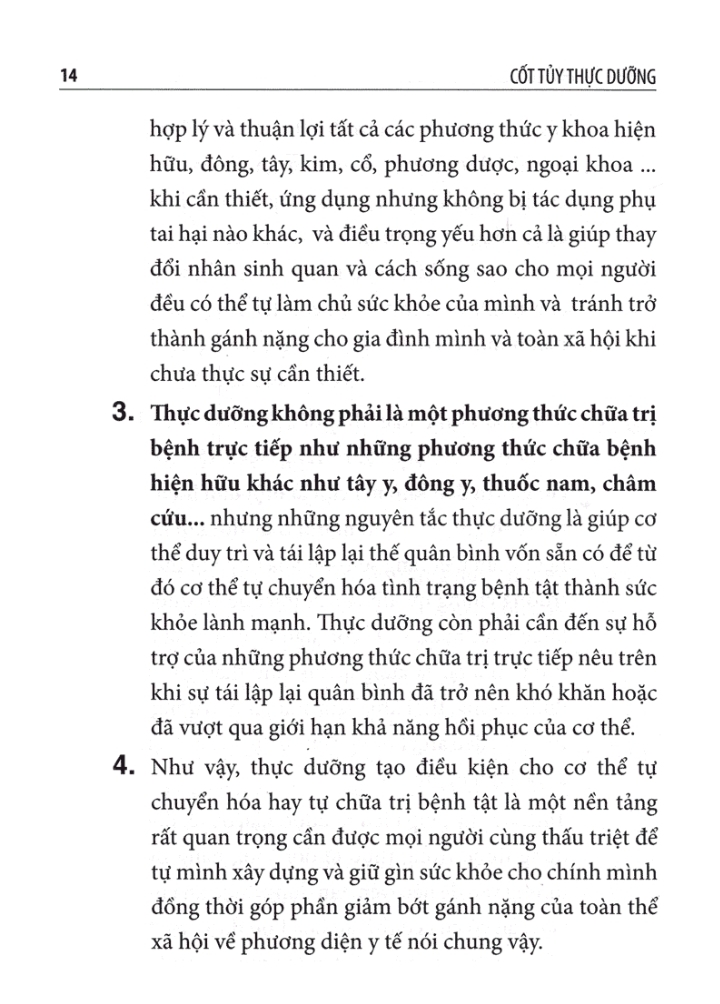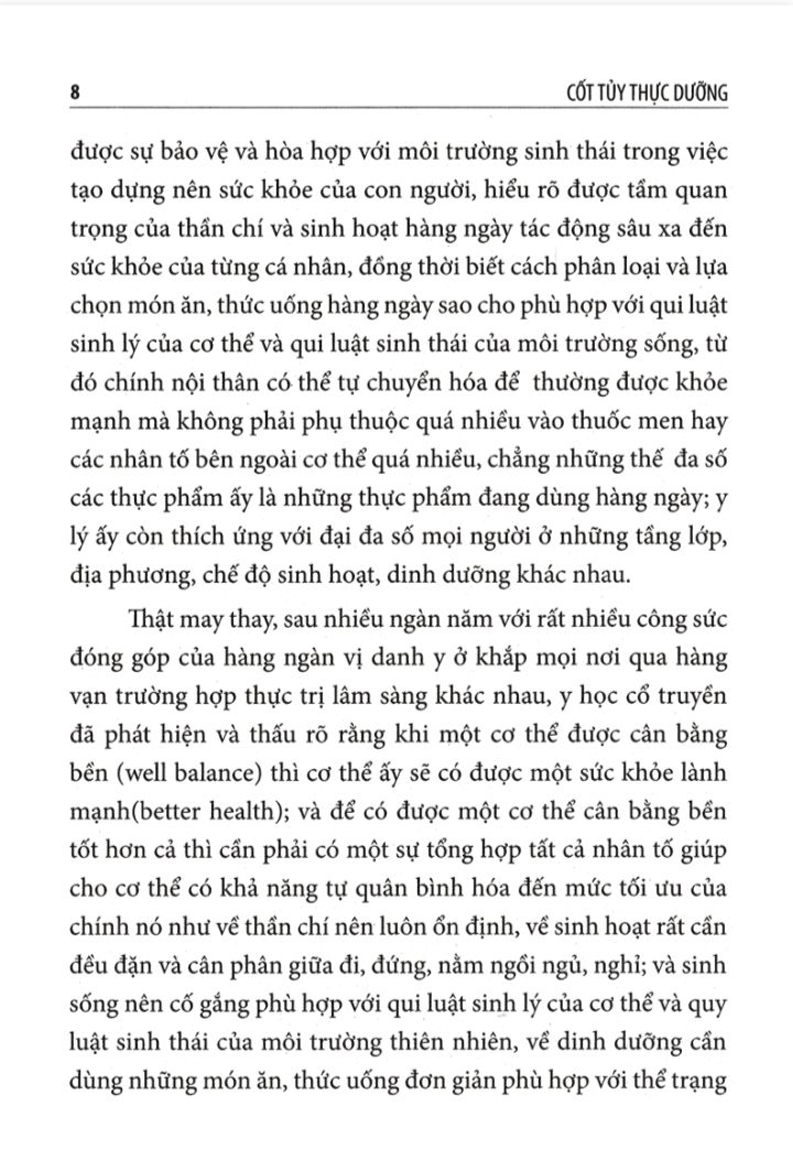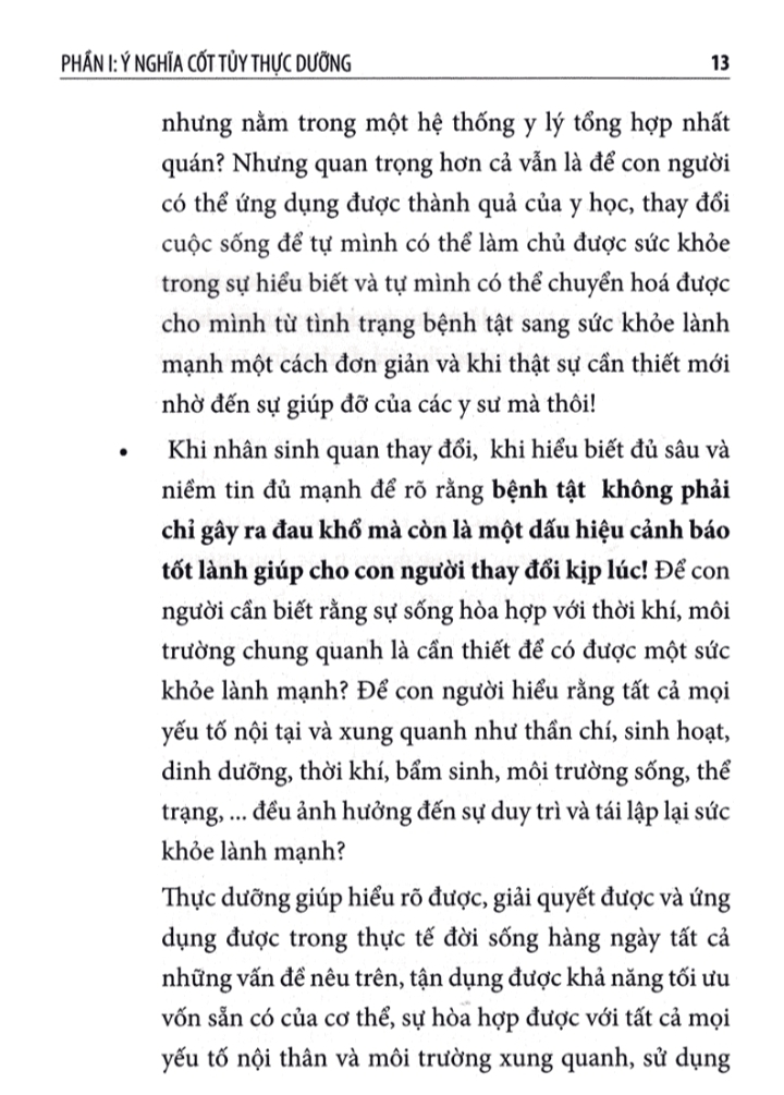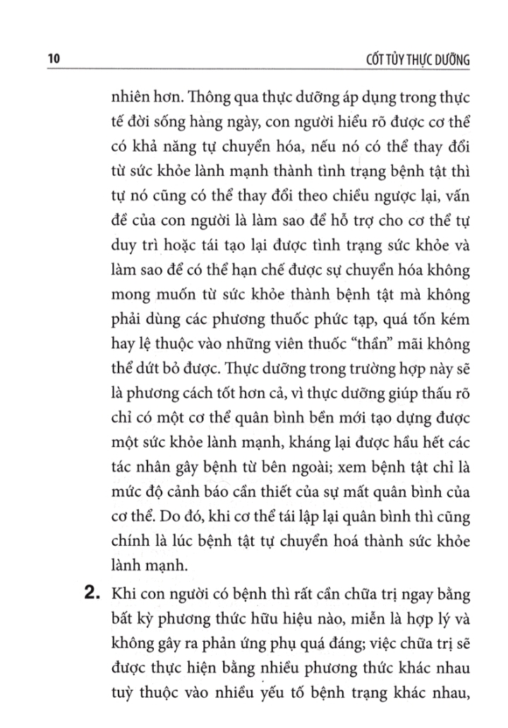Toàn bộ tuyển tập Cốt Tuỷ Thực Dưỡng mà đây là quyển sách đầu tiên, sẽ trình bày ra những điểm trọng yếu của cốt tuỷ thực dưỡng, những nguyên tắc chủ đạo khi áp dụng thực dưỡng trong đời sống hàng ngày, những nhận thức dễ hiểu lầm có thể tránh, đâu là giới hạn của thực dưỡng và những trường hợp nào rất cần thiết phải phối hợp với các phương cách trị liệu khác; nội dung sách sẽ đi sâu vào chỗ tóm “cốt tuỷ” của “thực dưỡng” để có thể dễ quán triệt và áp dụng nhiều thuận lợi hơn.